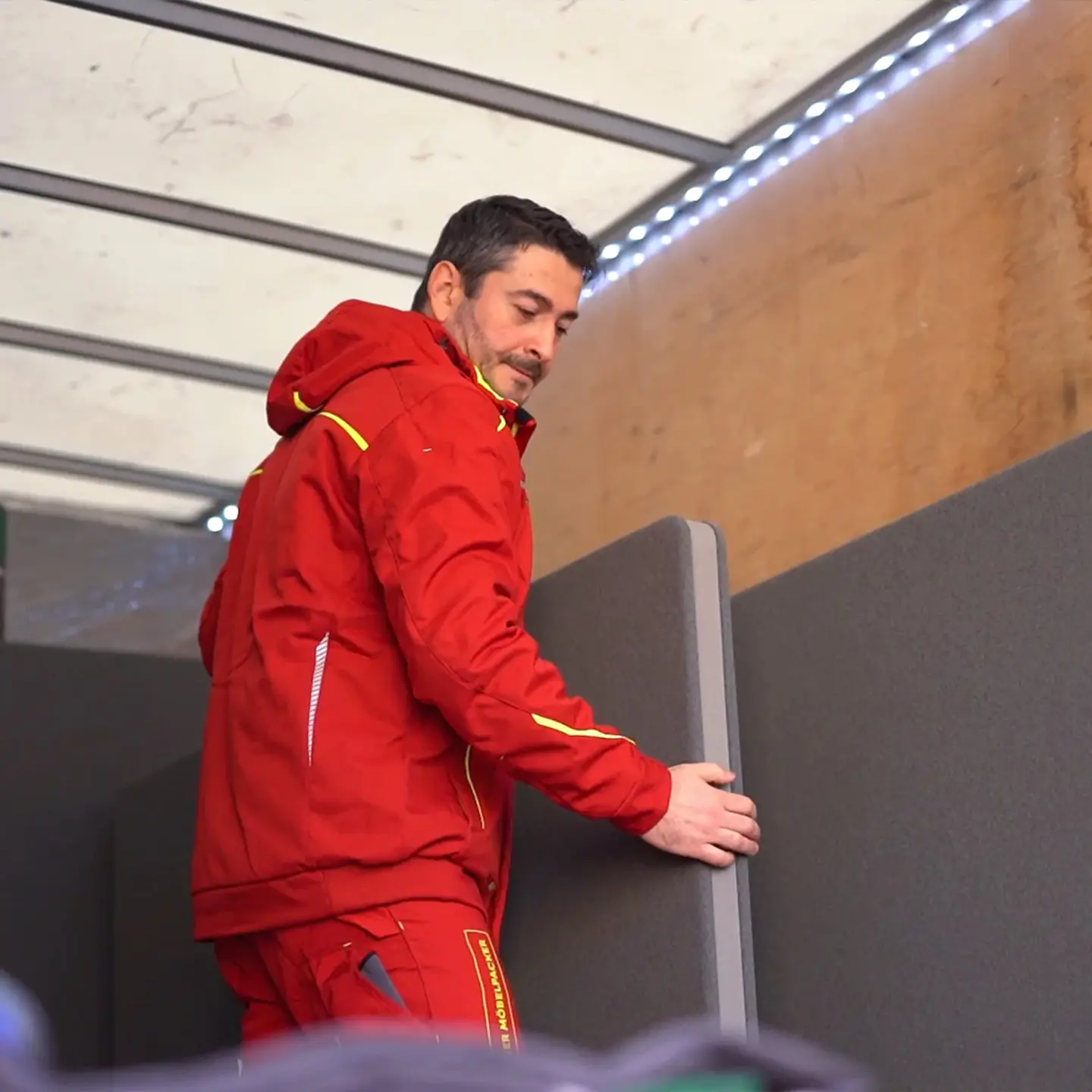 Möbelpacker verpackt Möbel sicher